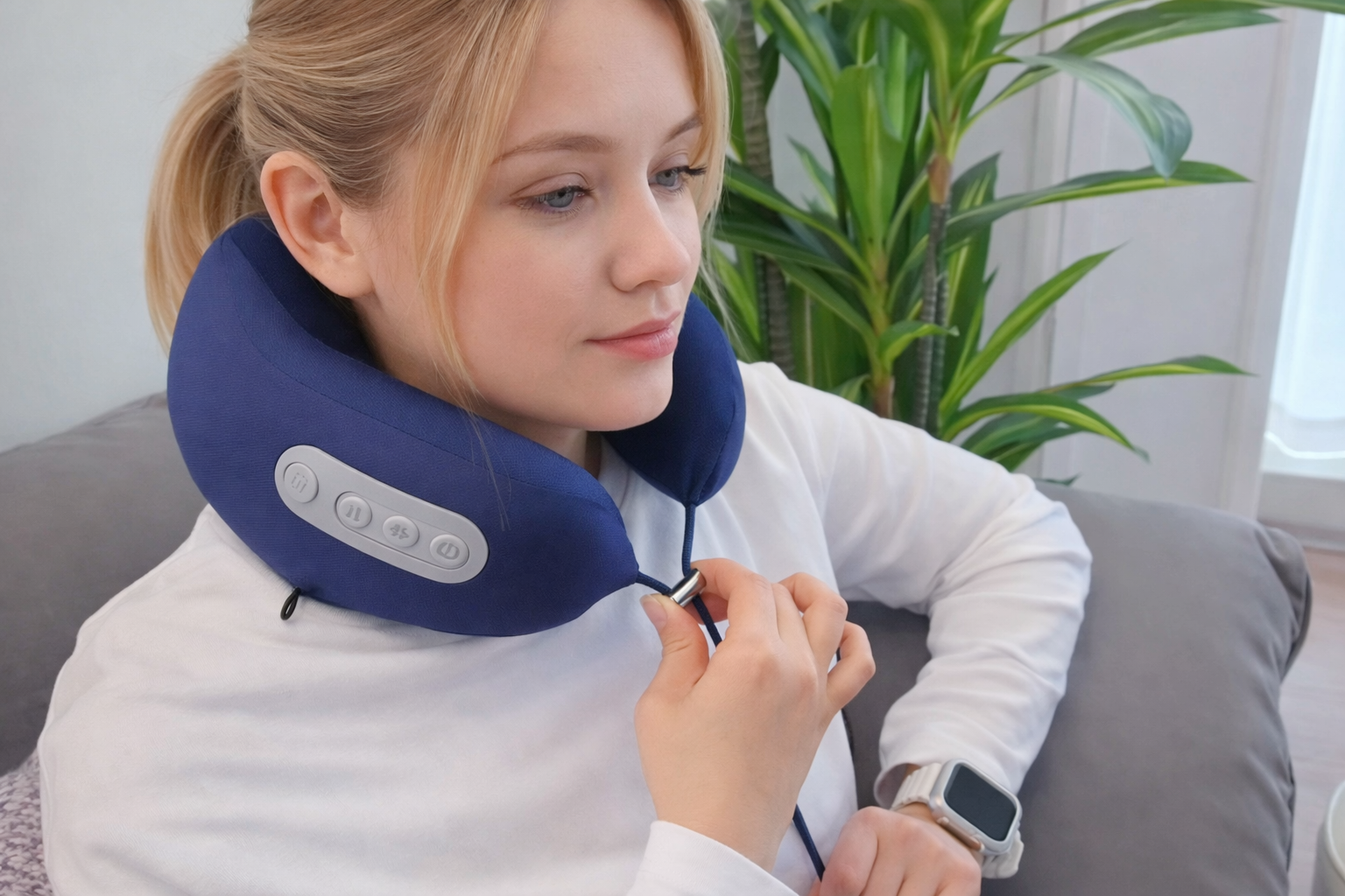 Nasaďte vankúš okolo krku, zapnite masáž a zvoľte režim. Na bežné uvoľnenie je praktický automatický program s časovačom.
