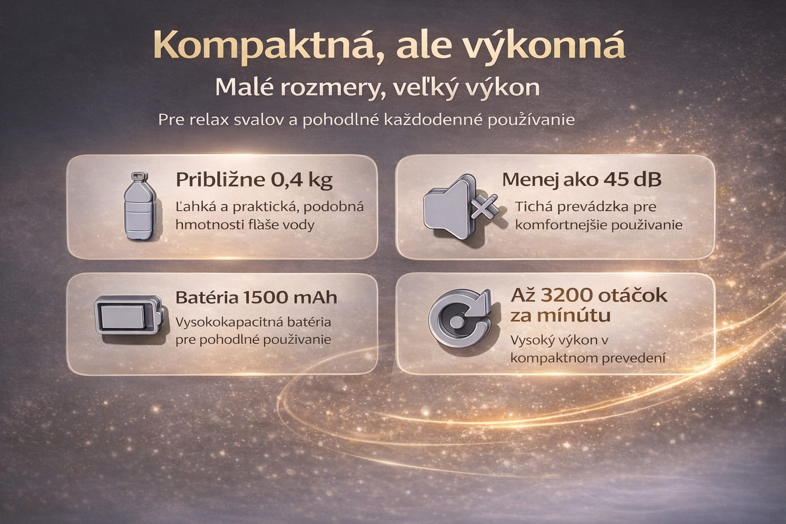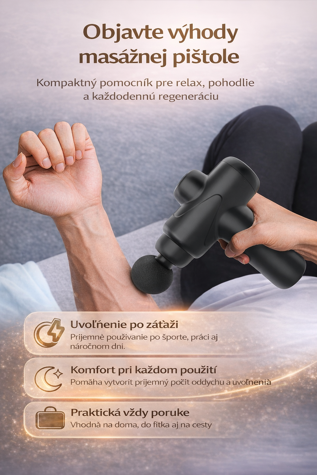 Či už si chcete spríjemniť oddych doma, po tréningu alebo počas dňa v práci, mini masážna pištoľ je praktickým doplnkom pre chvíle, keď si chcete dopriať viac pohodlia a relaxu.
