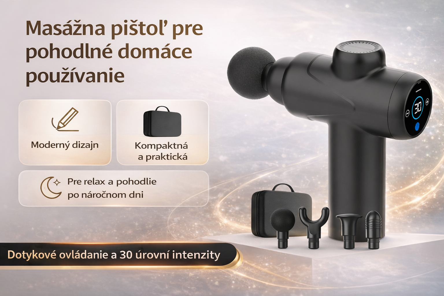 Doprajte si pohodlný relax doma, v práci aj na cestách. Mini masážna pištoľ s dotykovým displejom zaujme kompaktným prevedením, moderným vzhľadom a jednoduchým ovládaním. Podľa dostupného produktového listingu ide o mini masážnu pištoľ s dotykovým displejom, vyhotovenú z hliníkovej zliatiny, s ...