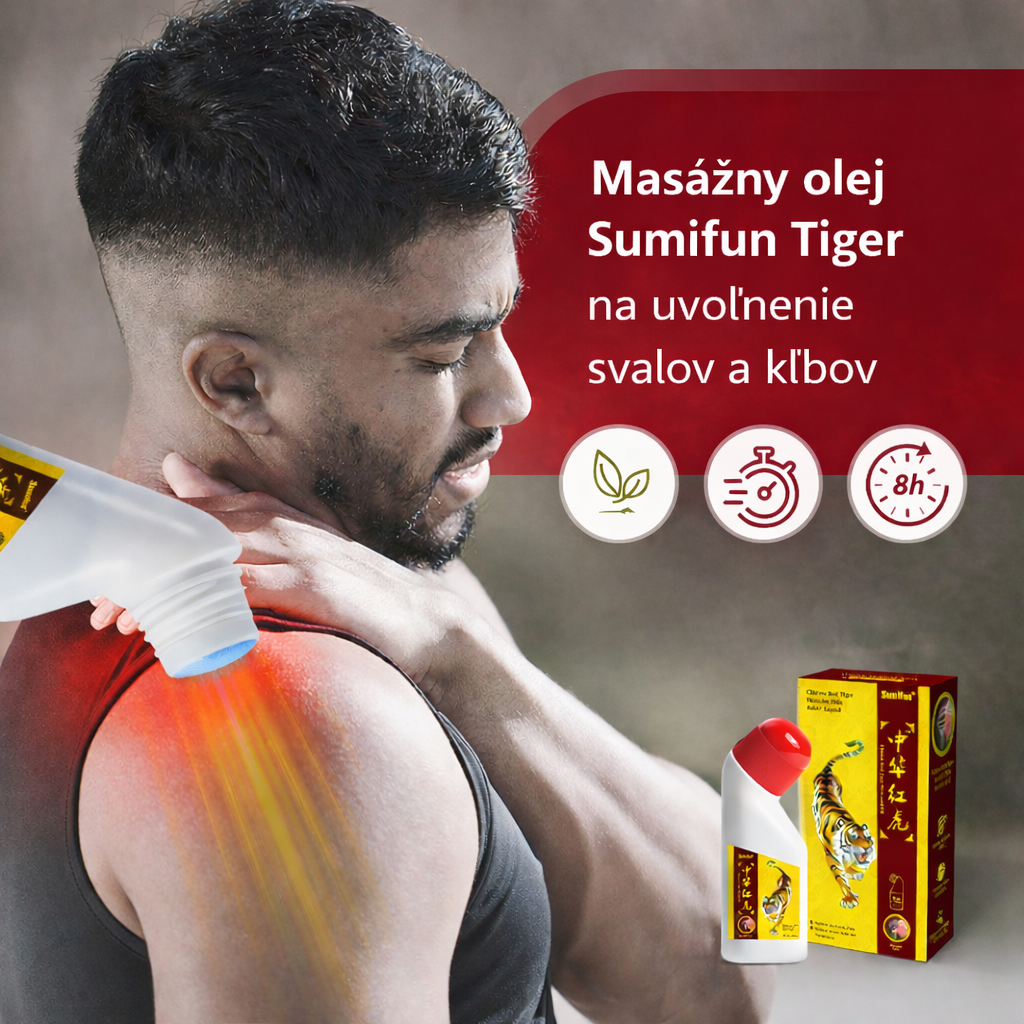 Máte stuhnutý krk, preťažené ramená, boľavý chrbát alebo namáhané kolená po práci či športe? Sumifun Tiger je bylinný masážny olej, ktorý sa nanáša priamo na pokožku a je určený na lokálnu starostlivosť o namáhané svaly a kĺby.